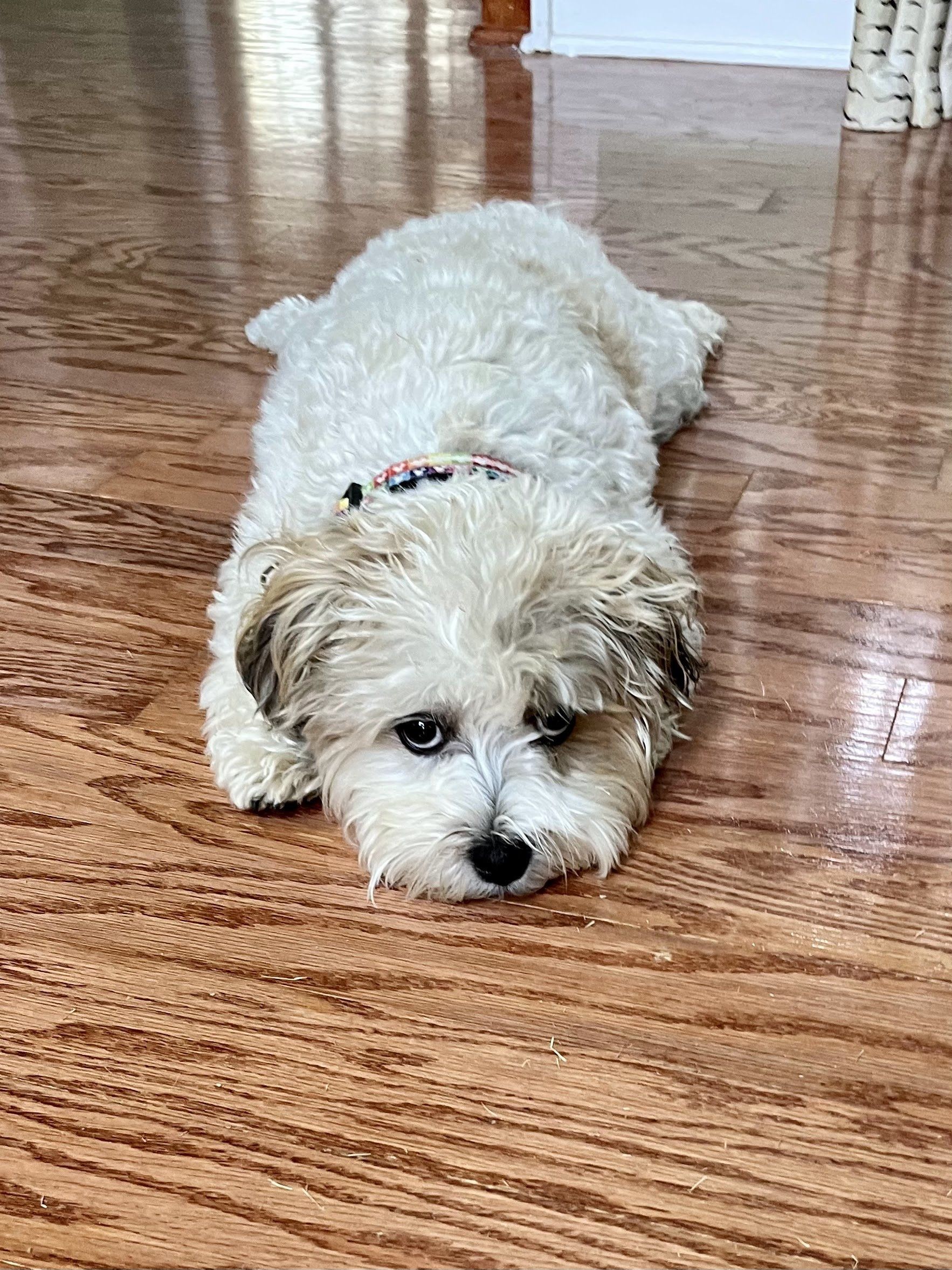 We have four wonderful dogs of our own. Cricket and Dorsey are our retired racing greyhounds. And, in 2020, we adopted Oliver and Emily, our sweet Cavalier King Charles Spaniels. And finally, we recently added Butternut, a Bearded Dragon, to our family.